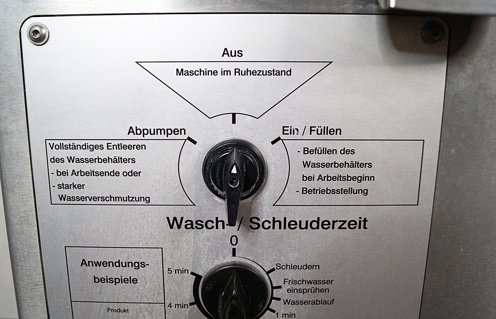 Zubehör: Feinsieb, Waschkorb, Maximal 8Kg Pro pro Wasch-Durchgang, Wasser Anschluss über Gardena Anschluss, Abwasser über 50er KG Rohr oder über Schlauch, Integrierte Abwasserpumpe. Großer Wasserauslass an der Front, zum Reinigen und Restwasser ablassen