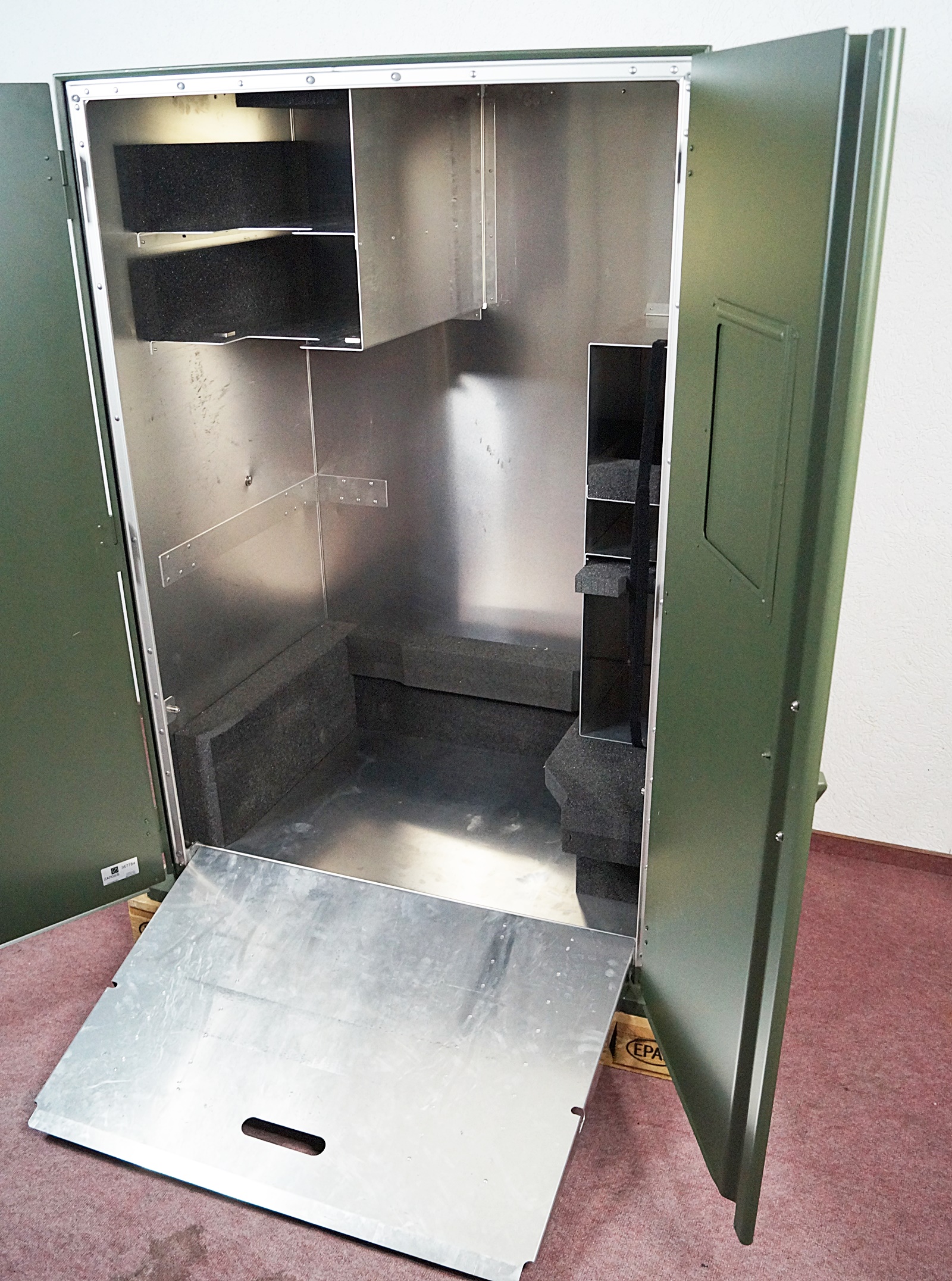 Bestelle jetzt die Zarges Kiste Shelter 110x80x155 cm mit 2 Türen und Rampe und profitiere von langlebiger Qualität für deine Aufbewahrung!